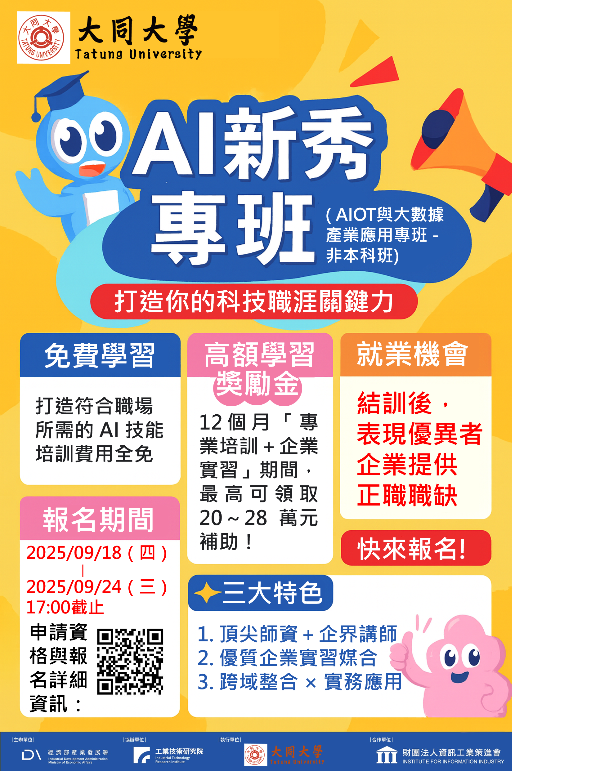 經濟部AI新秀計劃:智慧系統實作班 熱烈招生中!