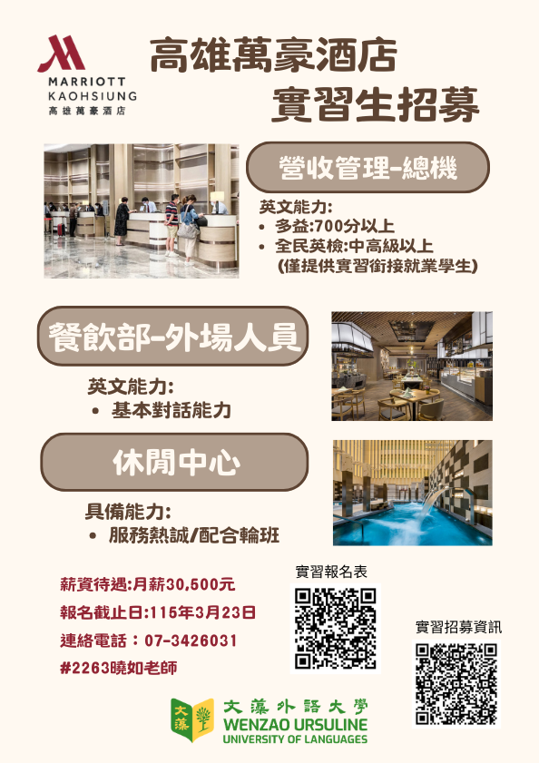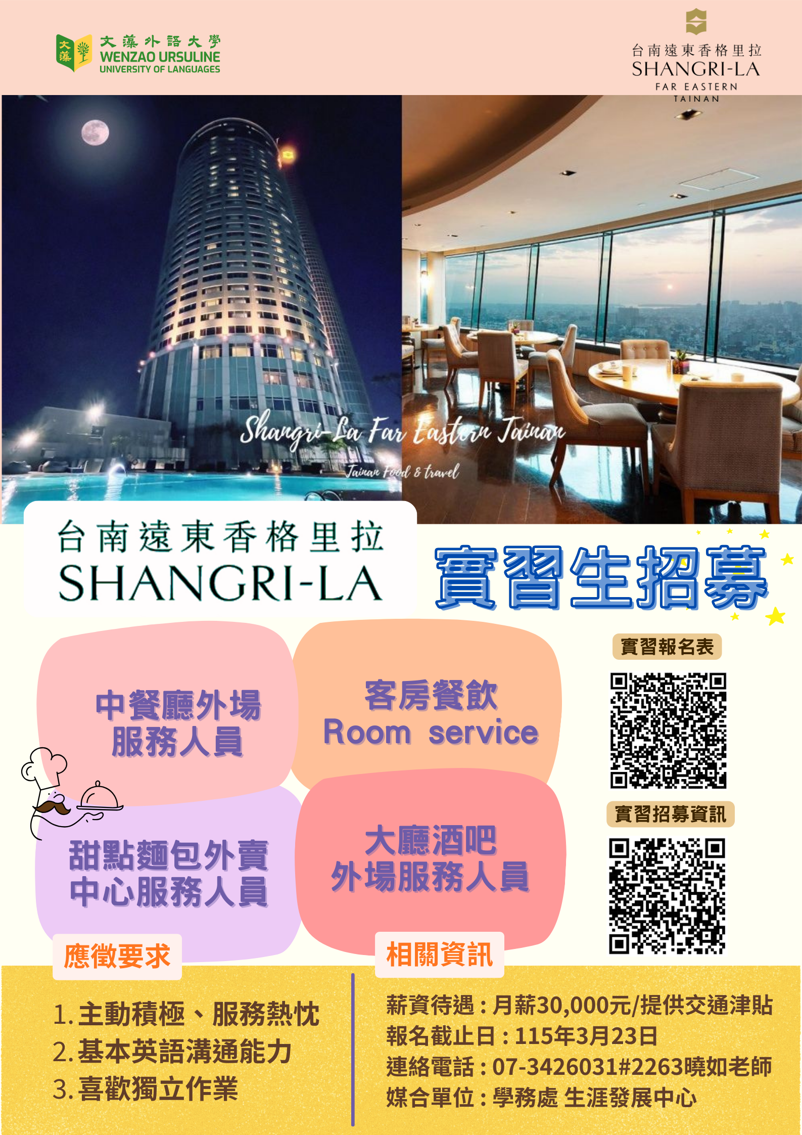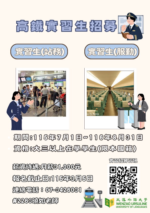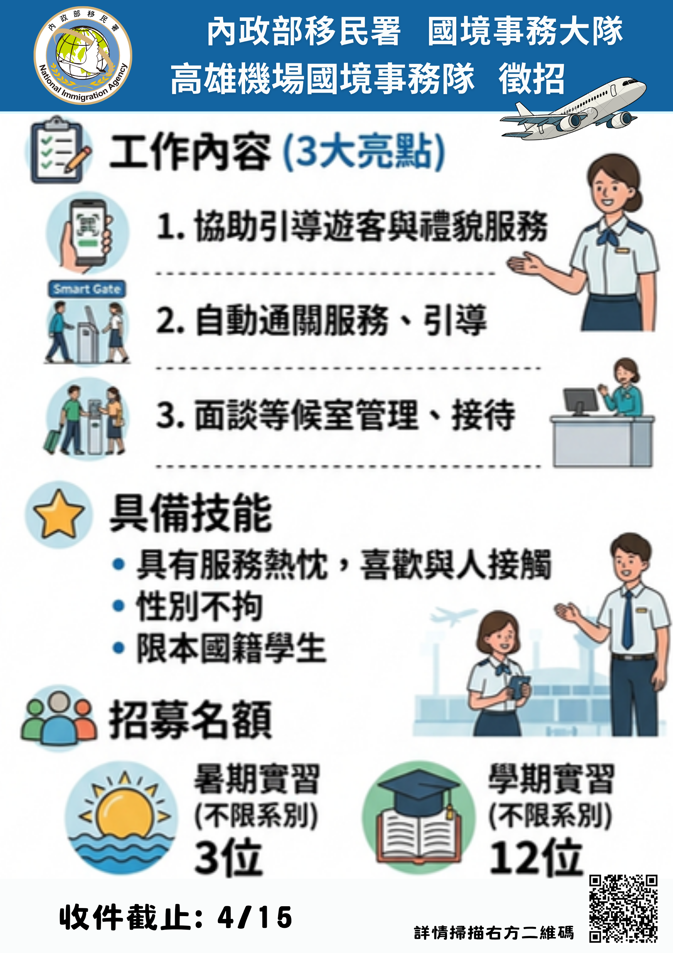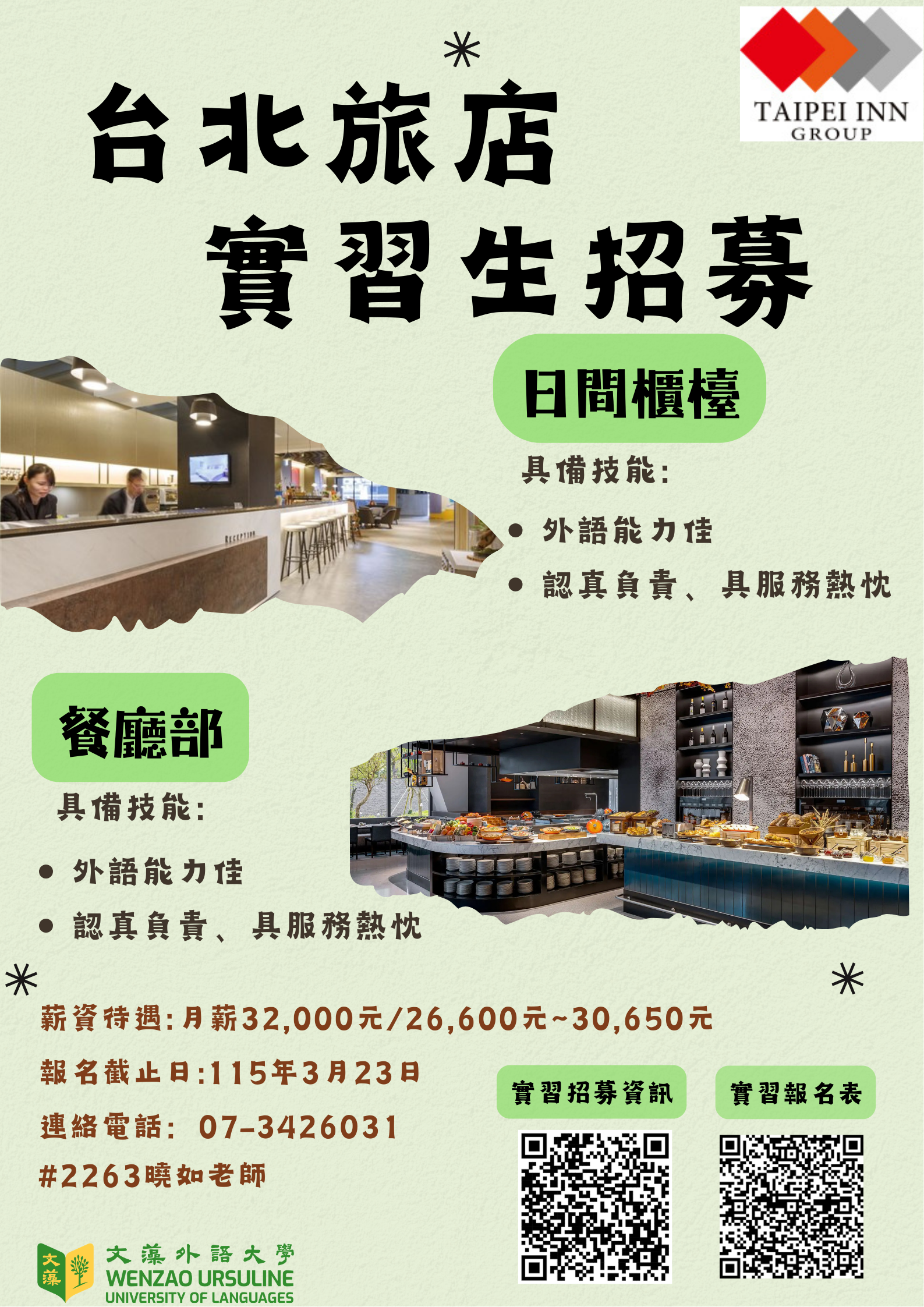五、部分實習職缺特殊條件,請參閱招募資訊備註說明。
