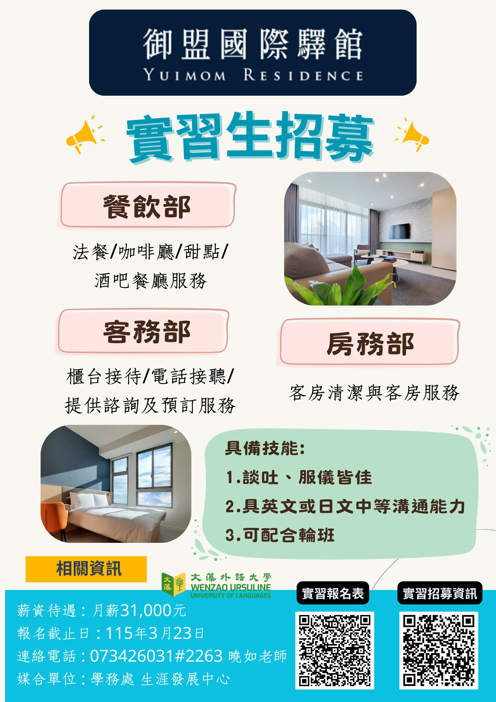 六、實習職缺需求招募資訊(PDF)請自行下載參閱。