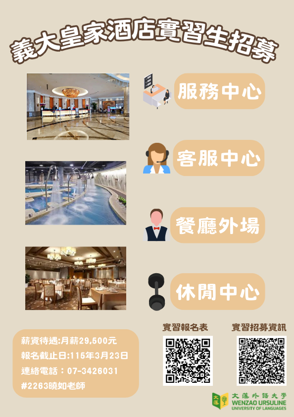 四、各系媒合之實習機構職缺資訊,請洽詢各系辦公室。