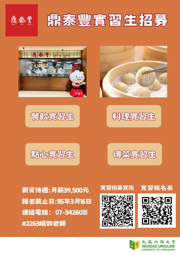(二)鼎泰豐:3月16日(3/19面試)(掃QRcode可連結報名線上說明會)